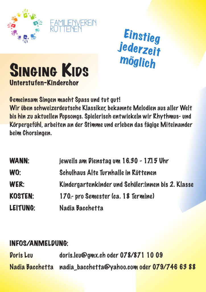 Chor Singing KidsKindergarten bis 2. Klasse Wöchentlich treffen wir uns zum Singen und Musizieren. Singing KidsHerunterladen